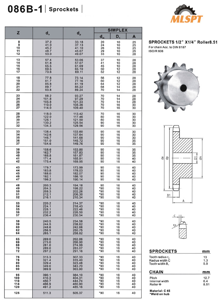 SPROCKETS 1/2” X 1/4” Roller8.51